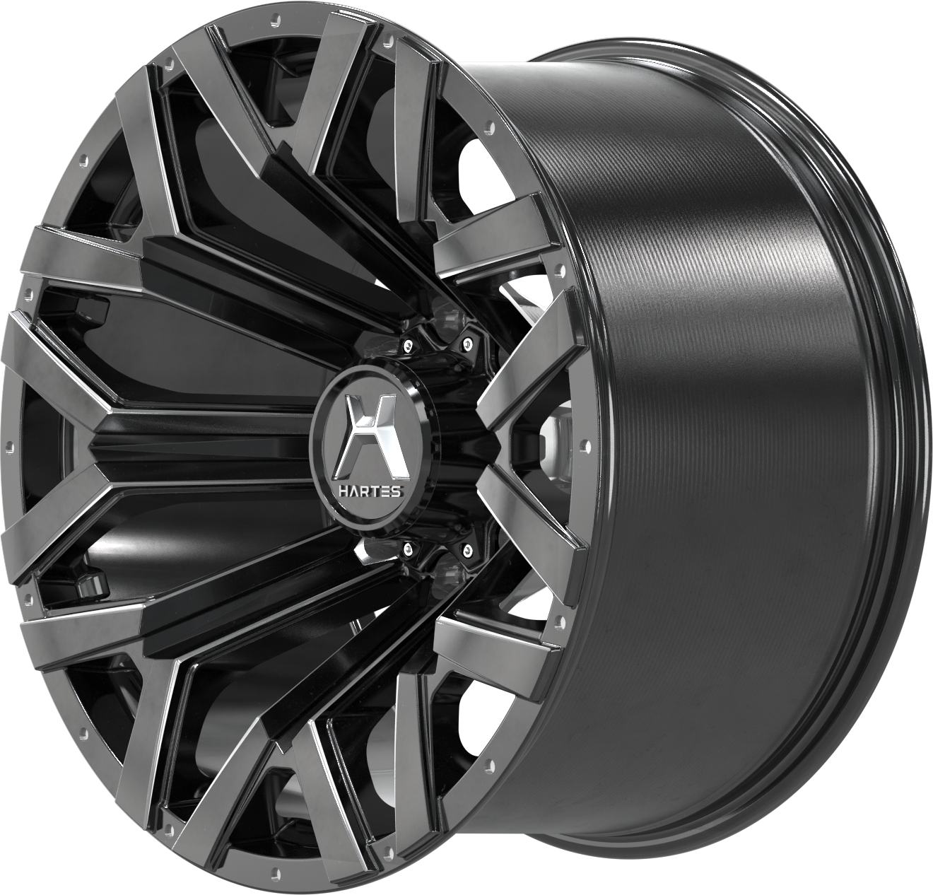 The HARTES METAL™ Hawkish reinvents off-road wheels with a detailed, layered Y-spoke design and sharp edges.